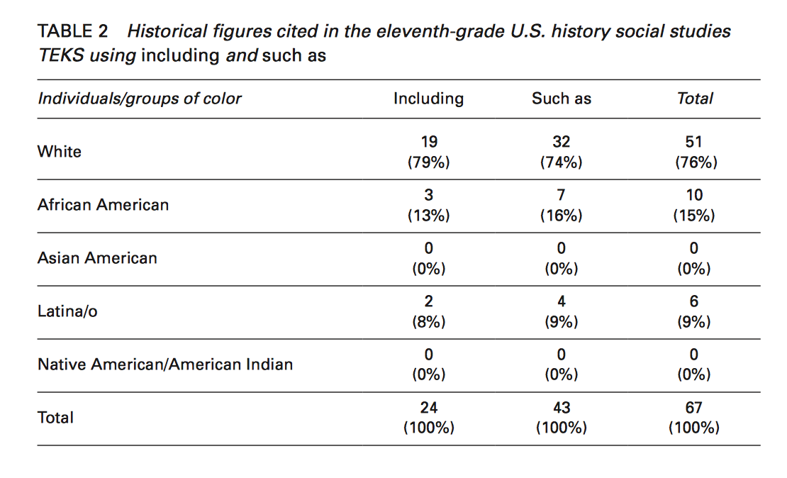 Our comprehensive textual analysis that went beyond leaders to all TEKS addressing groups of color found: