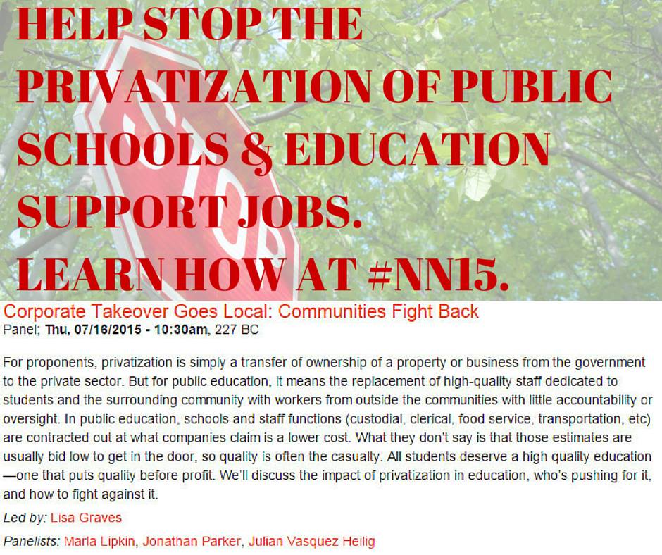 Not only are “choice” and “market-based” policies spreading across the United States, but the world is also facing privatization efforts. The United Nations recently convened a meeting to address the GERMs. I will begin with a quick discussion of primary domestic privatization efforts and then segue to the global pushback.