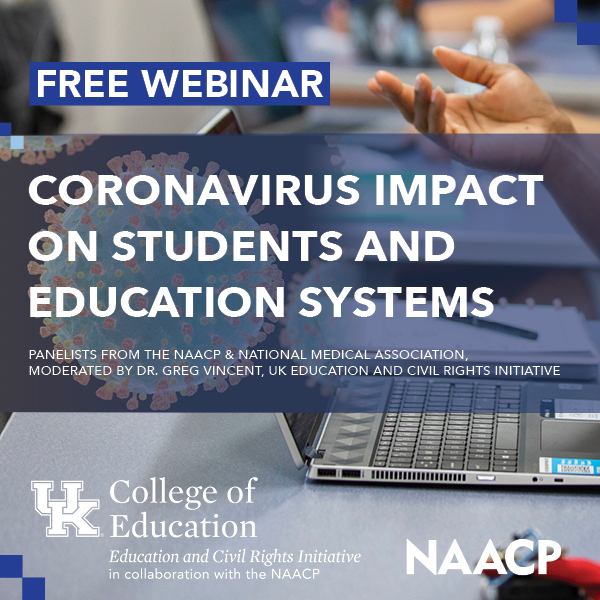 The discussion will be moderated by the University of Kentucky College of Education’s Dr. Gregory Vincent, executive director of the college’s Education and Civil Rights Initiative in collaboration with the NAACP. The initiative is based in the Department of Educational Policy Studies and Evaluation, where Vincent is a professor.