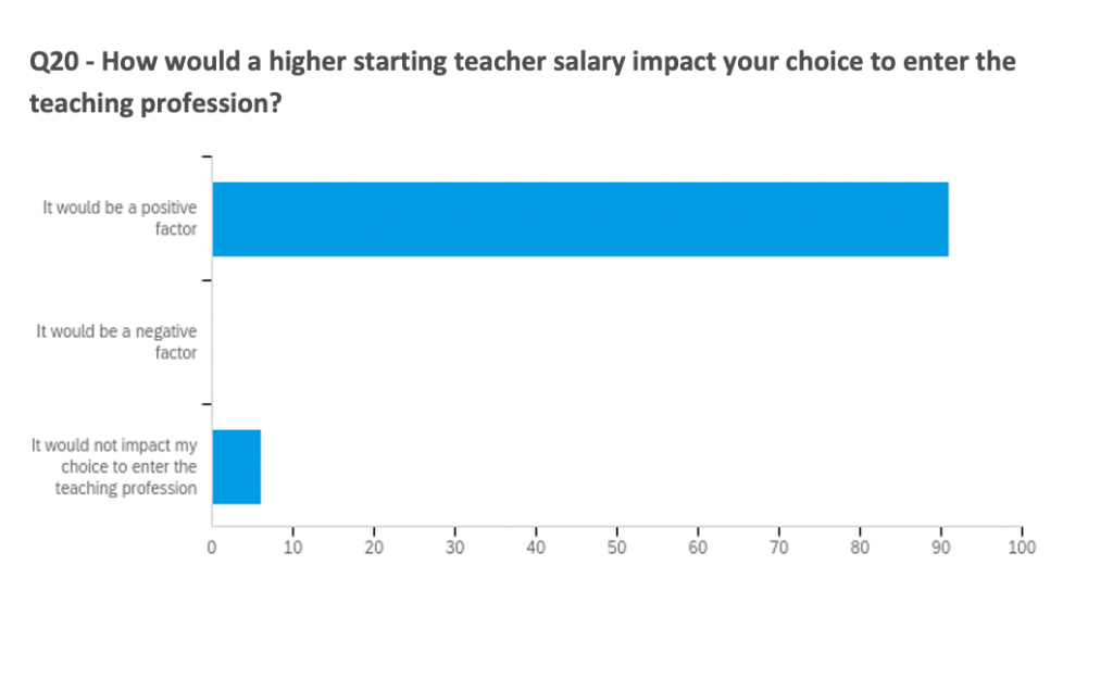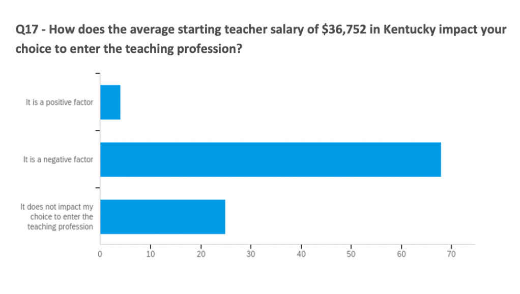 As teacher shortages and high attrition continue to plague the profession, it is important to ask what is important to the new generation of teachers. Based on a recent request, we sent a survey to all of our new teachers in the the UK College of Education and asked about a few pecuniary and non-pecuniary aspects of the ongoing debates in the public policy. In just a few days, more than 100 of our University of Kentucky College of Education’s new teachers responded to inform our practice. Here are the questions and their answers.
