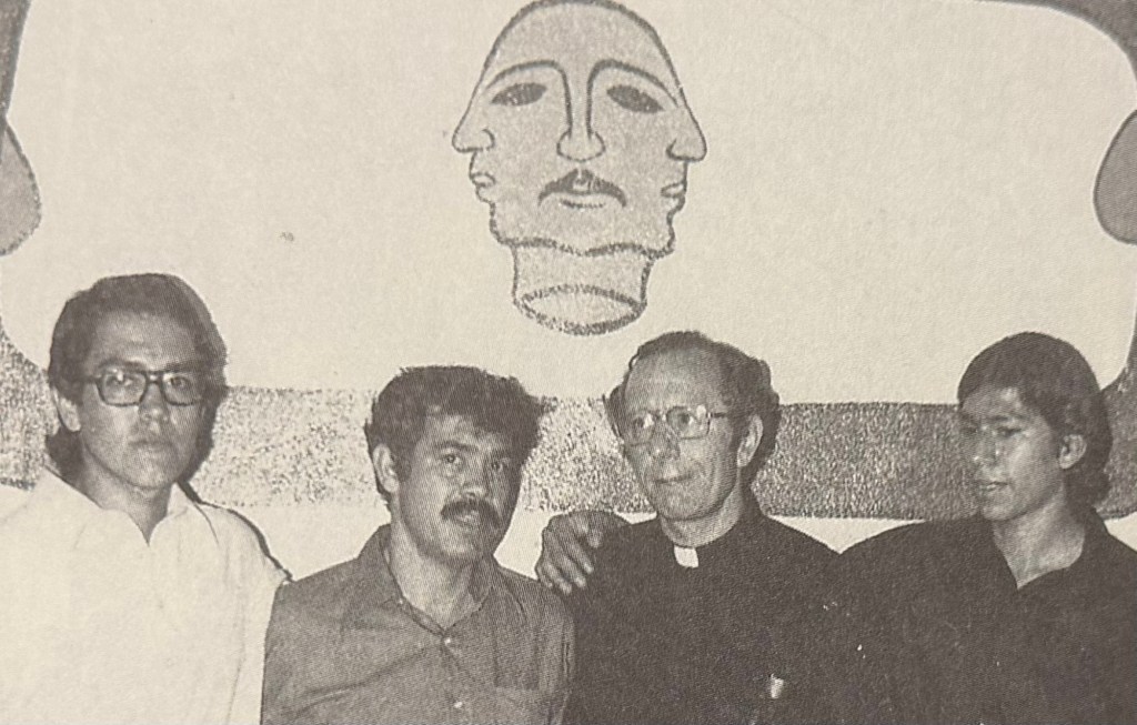 Photo credit: The Crusade for Justice: Chicano Militancy and the Government’s War on Dissent Original Caption: Radical priest James Groppi of Milwaukee, Wisconsin, poses with Ernesto Vigil, Rodolfo Gonzales, and Mario Manuel Vasquez after a June 10, 1973, fund-raiser in support of the Crusade’s legal defense committee. Photograph by Pablo Castro.